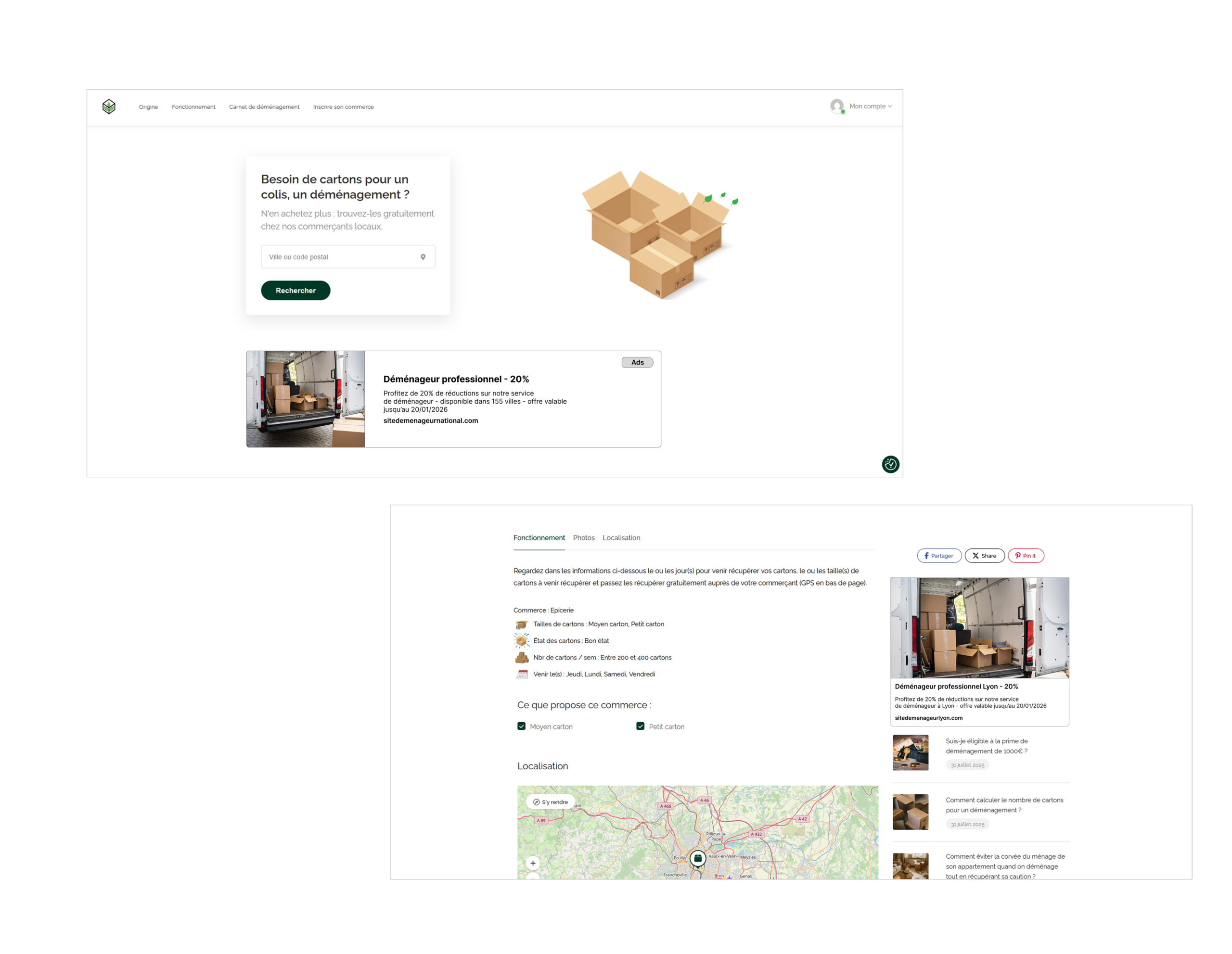• Auprès de +300 commerçants actifs donnant une seconde vie à leurs cartons de toutes tailles gratuitement tous les jours